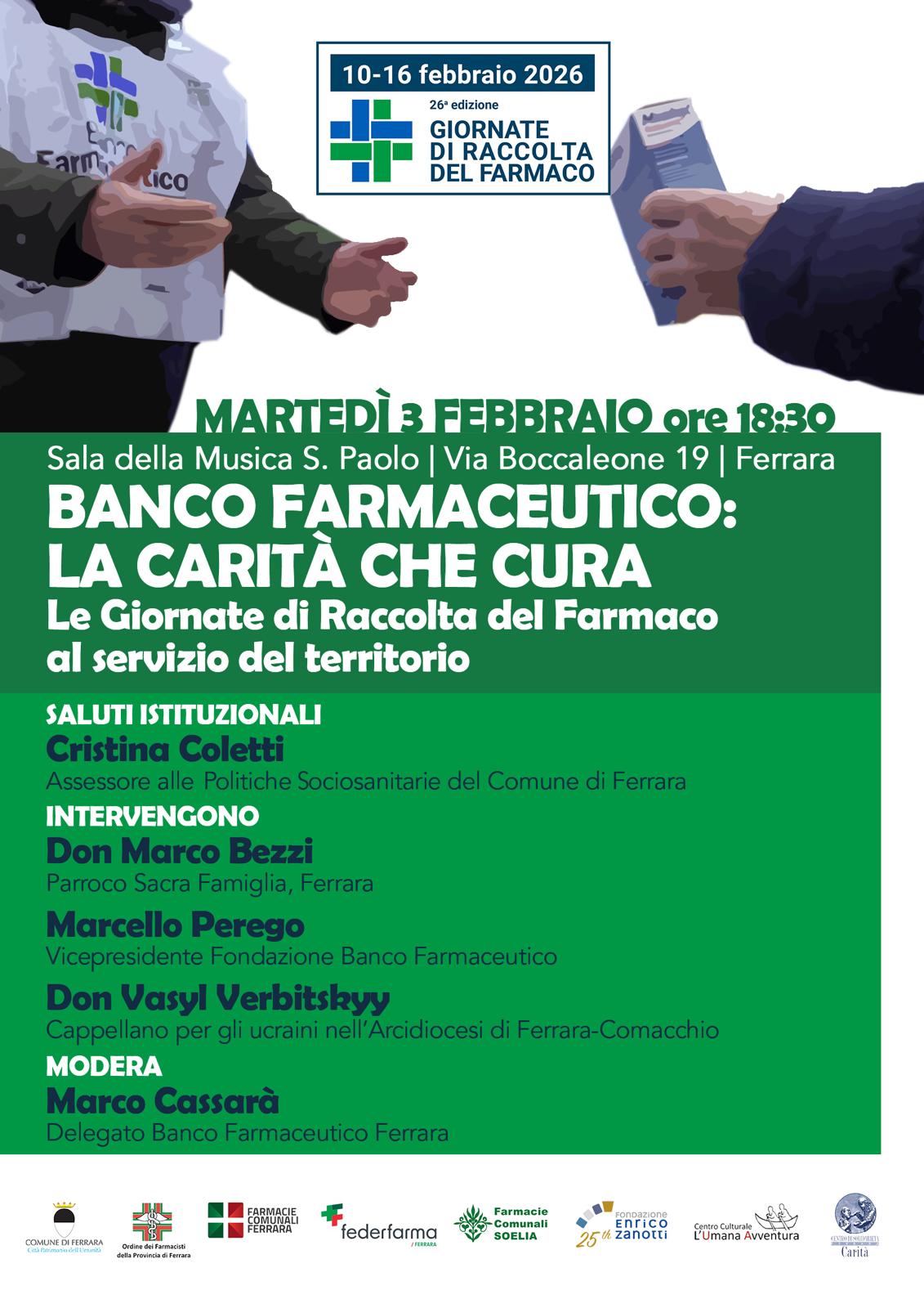 Segnaliamo l’invito del Banco Farmaceutico di Ferrara all’incontro di lancio delle Giornate di Raccolta del Farmaco 2026, dal titolo Banco Farmaceutico: la carità che cura.