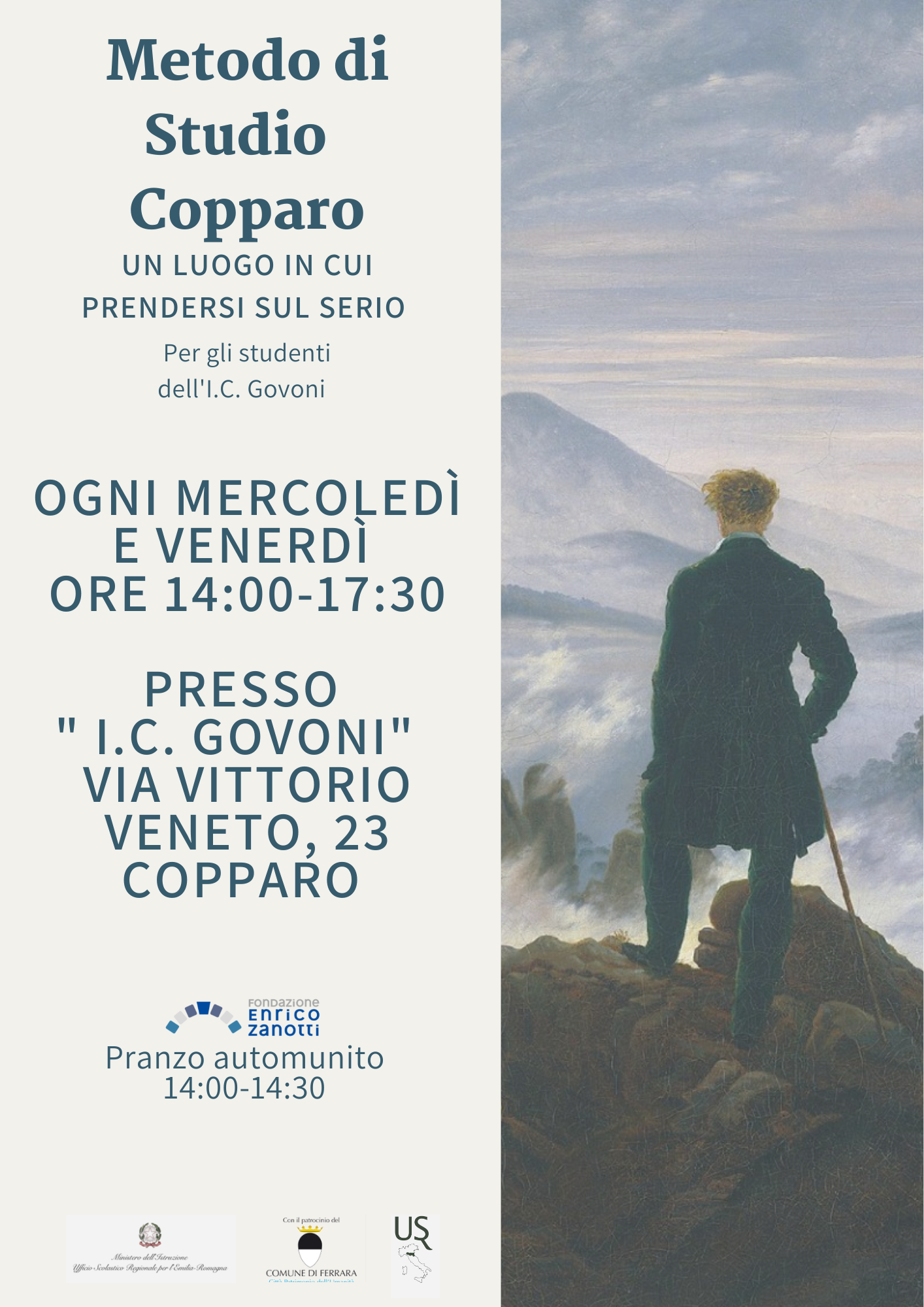 Da venerdì 28 Ottobre 2022 dalle 14:00 alle 17:30 inizia il Metodo di Studio di Copparo presso l’Istituto Comprensivo C. Govoni in via Vittorio Veneto, 23, Copparo.